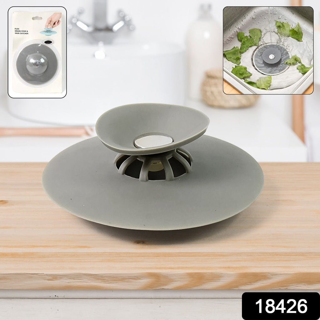 Sink Stopper Silicone Bathtub Stopper, Kitchen Sink Drain Strainer, Bathroom Drain Plug Drain Stopper, Shower Drain Sink Cover with Hair Strainer (1 Pc)