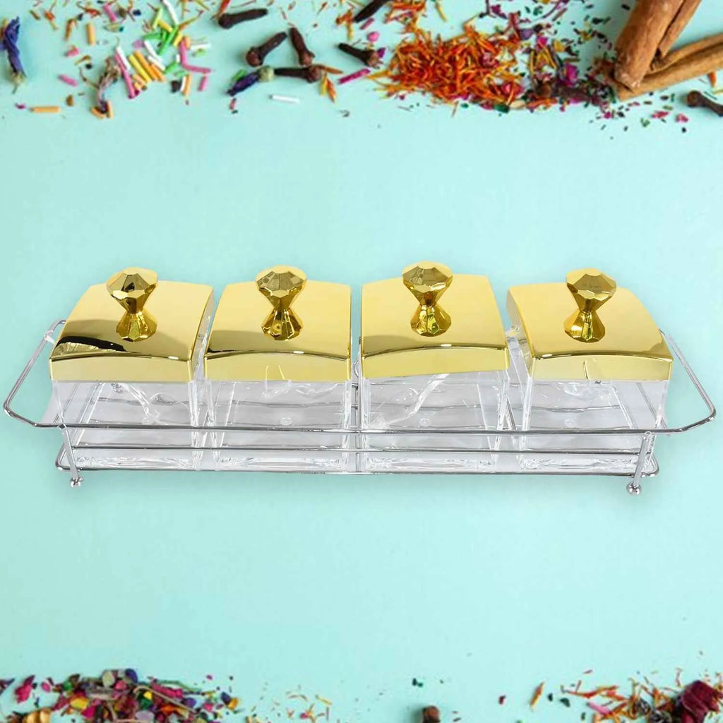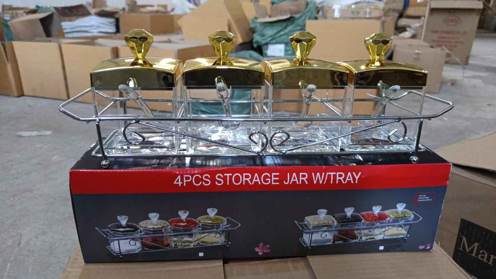 - Package content- 4 pcs of containers / Jar With Tray & Spoon